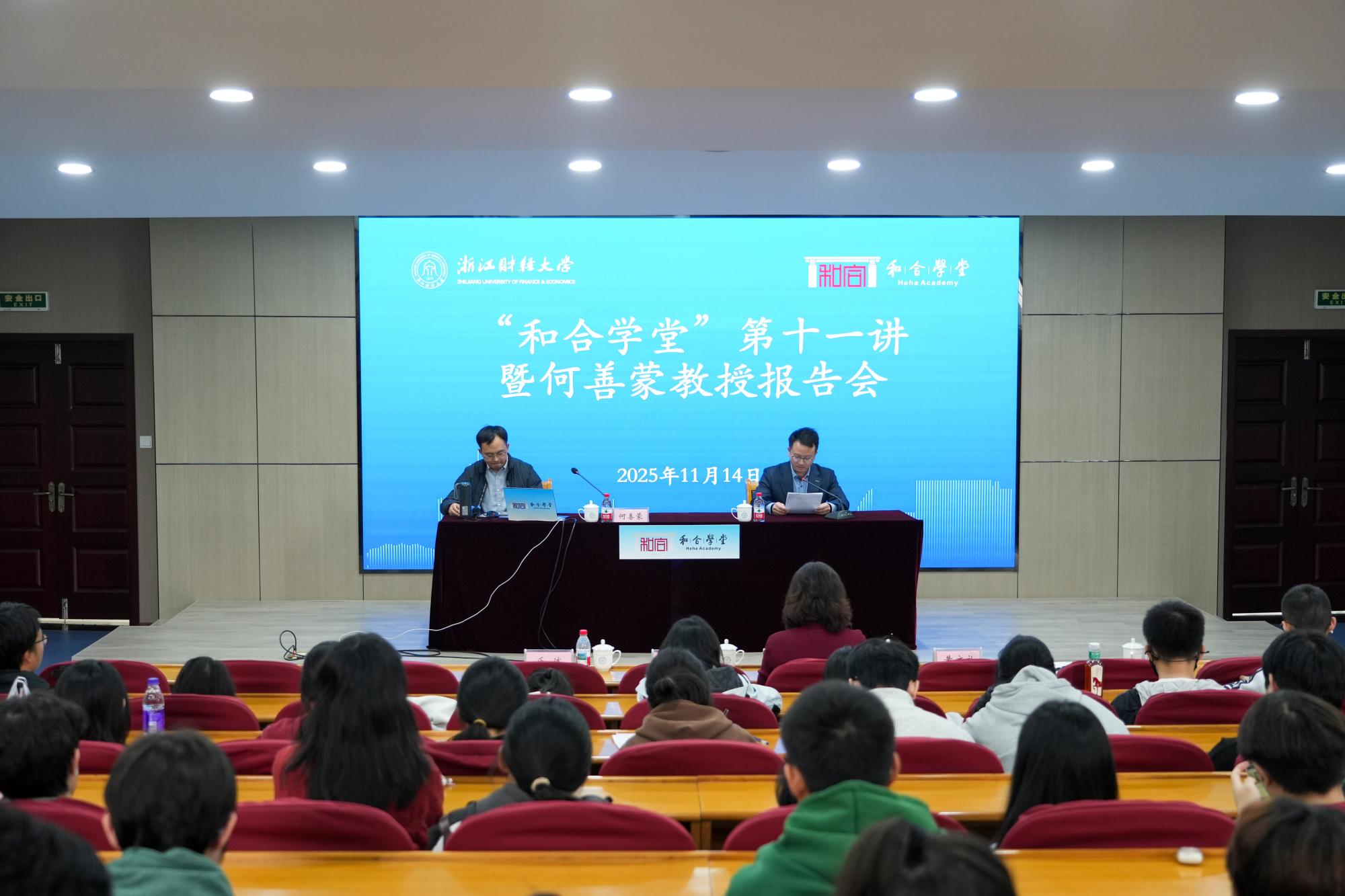 11月14日,学校“和合学堂”第十一讲在学术中心开讲。浙江大学哲学学院何善蒙教授带来了“什么是和合文化?”主题报告。副校长郑亚莉,国际处负责人以及全校师生代表等130余人参加报告会。